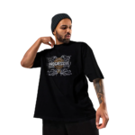 Camiseta em modelo oversized, confeccionada em meia malha premium com 160 de gramatura, fio 30/1 penteado 100% algodão, com estampa remetendo à identidade da Progressive e da DM7 10 Anos.